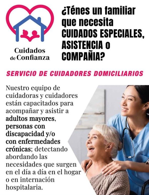 En Cuidados Confiables nos dedicamos a acompañar con respeto, calidez y compromiso a quienes más lo necesitan. Contamos con un equipo de cuidadores capacitados para asistir a personas mayores y con discapacidad, brindando atención en el hogar o en internaciones domiciliarias.